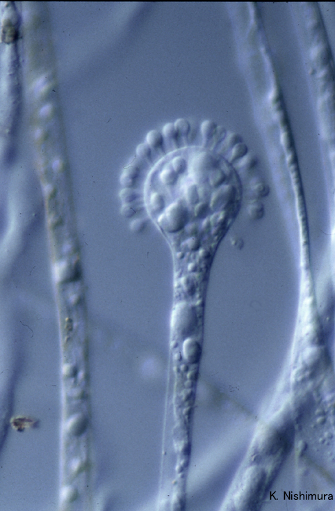 Sporangiophore terminating a vesicle with a lot of one-spored sporangioles