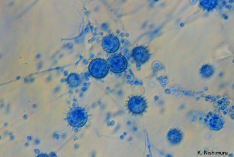 大分生子は球形,厚壁で表面に小結節あるいは指状突起がある. 小分生子は洋梨形,薄い平滑な壁を有する.