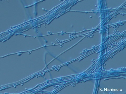 分生子は無色,楕円形,短円筒形,単菌糸や菌糸の束から生じる.